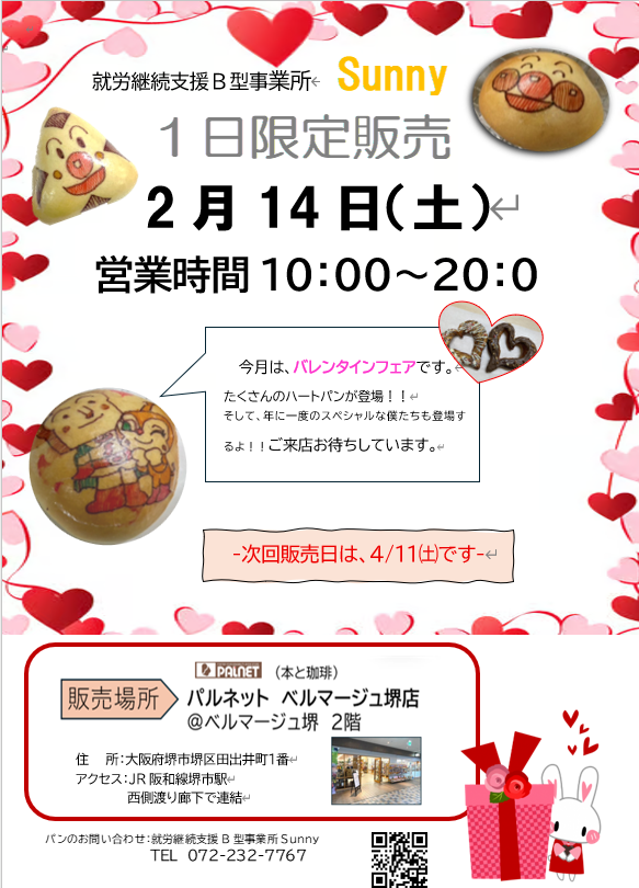【パルネット ベルマージュ堺さん】にて、Sunnyのパンが販売されます!